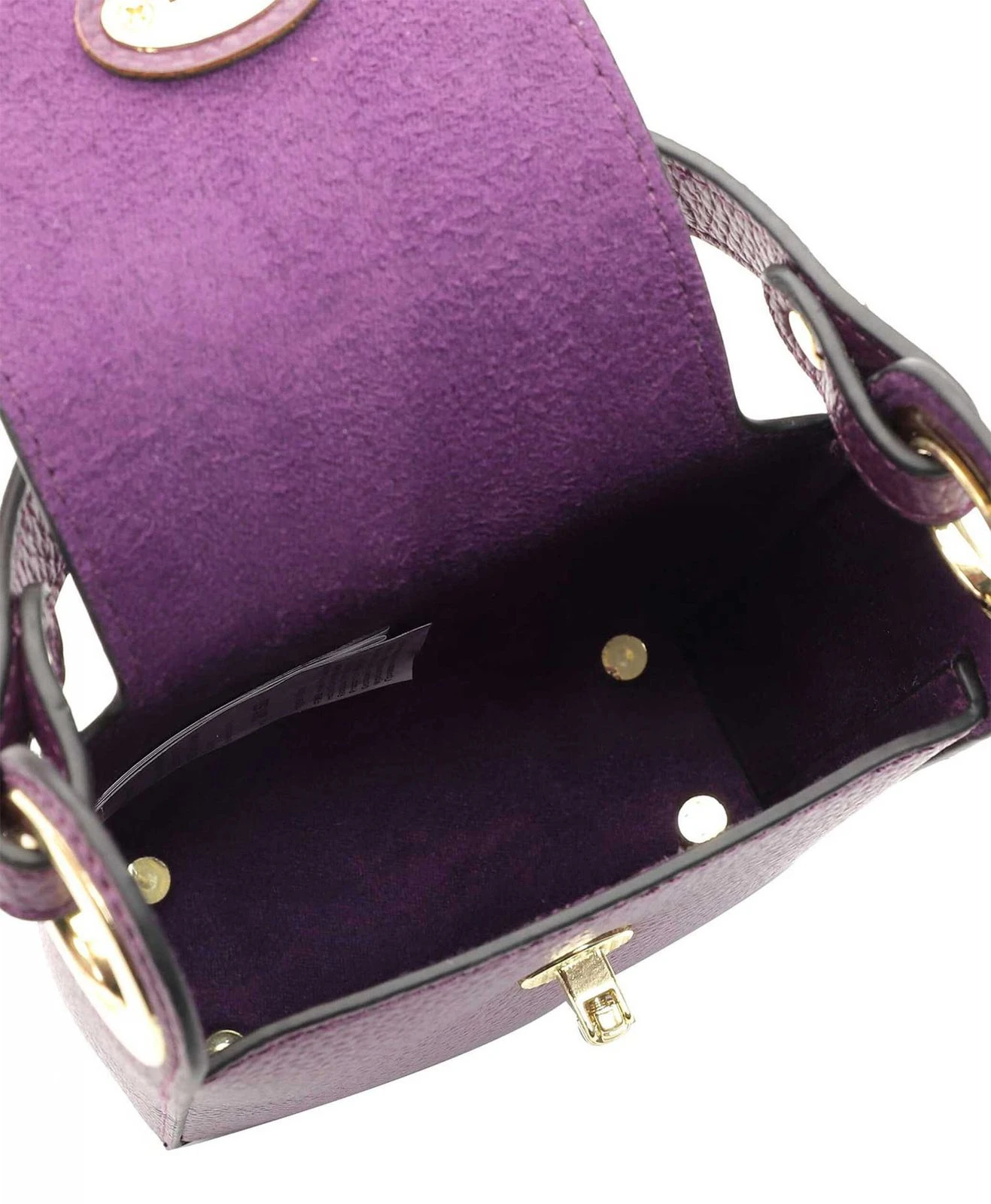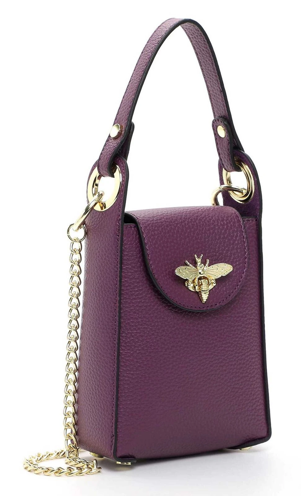 - Handtasche wird mit Überschlagklappe und Steckverschluss geschlossen